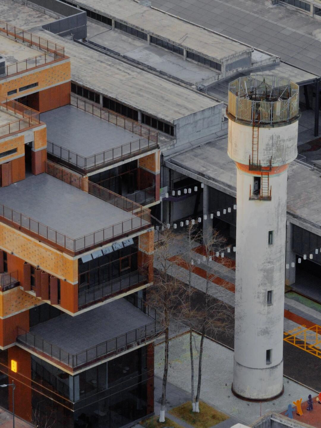 除了住宿,整个园区非常的大,建筑也很独特,陶溪川保留了原址是当地的东风厂、540艺术瓷厂、青瓷研究所、等工业遗存和大树(真的很有生命力)而名称当中的“望瓯”,指的是临近瓯江,可见山见水。