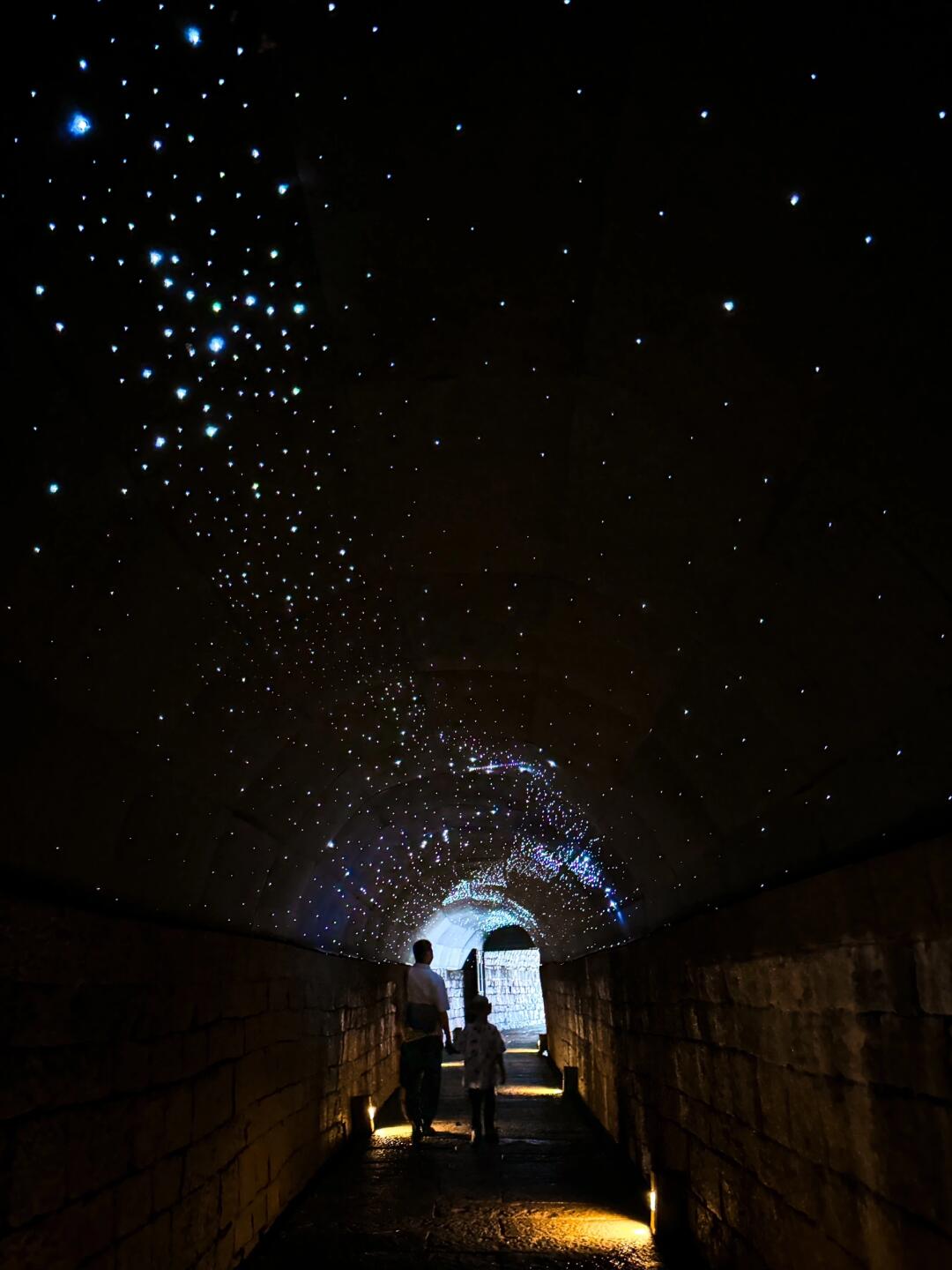 全长1公里,面积2.8万平米,5.0版全线不同的裸眼灯光秀巧妙结合在岩溶上为游客提供了魔幻神秘的氛围~