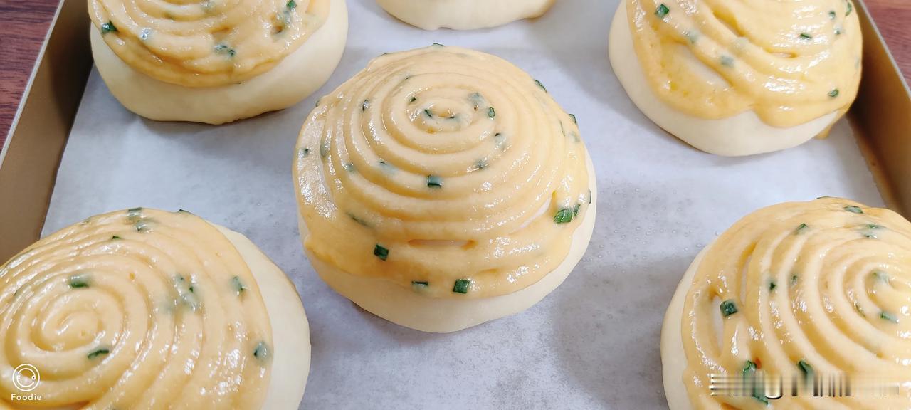 你吃过表皮掉渣的面包吗? 这款面包不知道叫什么名字 但是,吃一次就忘不了 喜欢它六亲不认的膨胀💥 从一个小圆球到一个大胖子 从平平无奇到垂涎欲滴[爱慕] 第一次手接着吃面包,表层酥皮不断掉渣[吃瓜群众] 酥、软、香 第一次一炉面包,胳膊上留三条烫伤[皱眉] 笨、傻、疼 配方: 主面团 高筋粉:200g. 牛奶:90g 耐高糖酵母:2g. 白糖:30g 盐:1g. 鸡蛋:1个 黄油:20g 酥皮 黄油:30g. 白糖:30g 盐:1g. 低筋粉:50g 鸡蛋:1个(45g左右) 小葱:2根 馅料 海滩芝麻肉松、沙拉酱、火腿肠 烘烤时间: 烤箱上下火预热至170度,烤25分钟,上色及时盖锡纸。