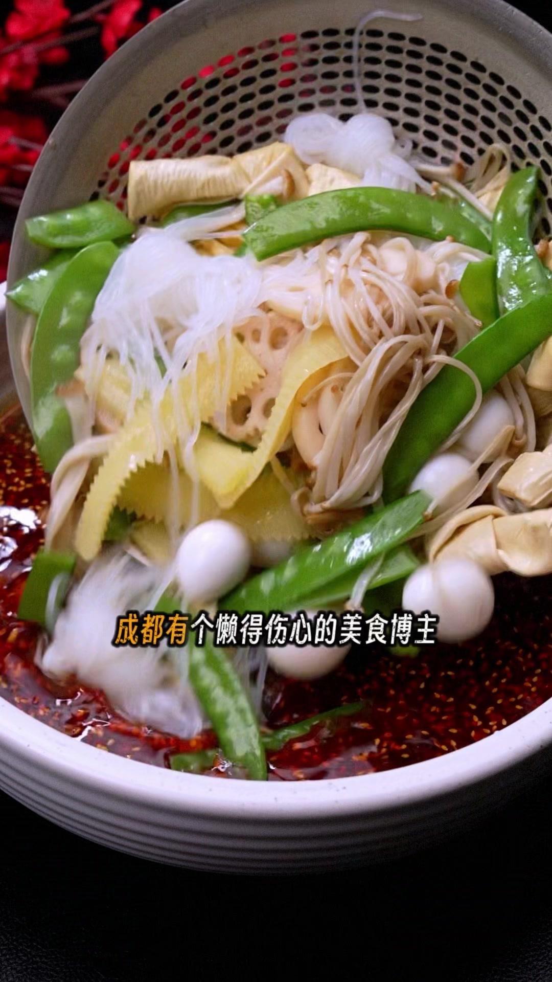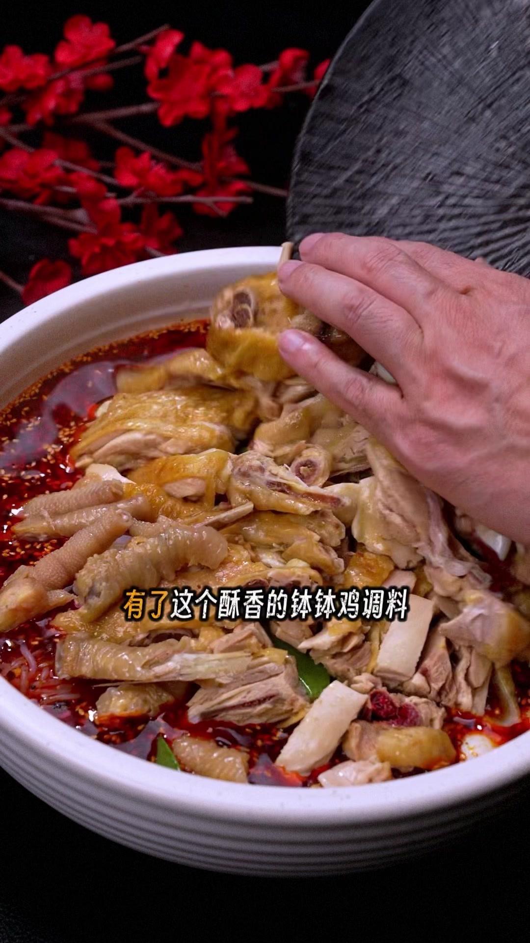 🥘家头来客,懒得伤心的美食博主都会做一大盆乐山钵钵鸡,有荤有素,大家都爱吃!🥘 🐔10块钱一斤的跑山鸡,冷水下锅,加葱姜花椒煮20分钟,再焖10分钟,捞出来宰成长条。 🥗喜欢吃钵钵鸡就给我点个赞,下次想做才找得到哦!素菜煮到刚刚熟,就放入冷水中挤冷,这样口感才巴适。 🧂市面上的钵钵鸡调料有很多,我用的这个酥香的钵钵鸡调料,一袋料可以做3斤钵钵鸡。这个钵钵鸡调料我吃了3年,地道的乐山口味。 🥘先放素菜,再放荤菜,浸泡半个小时更入味。 🤤有了这个酥香的钵钵鸡调料,想吃乐山钵钵鸡比泡方便面还简单!