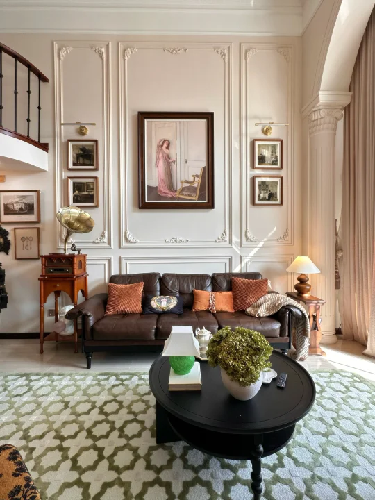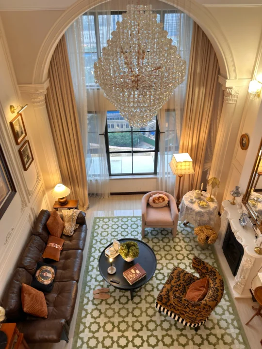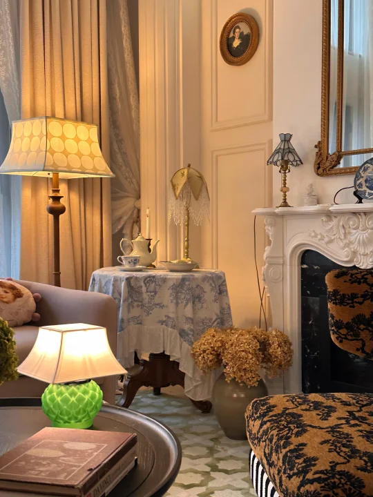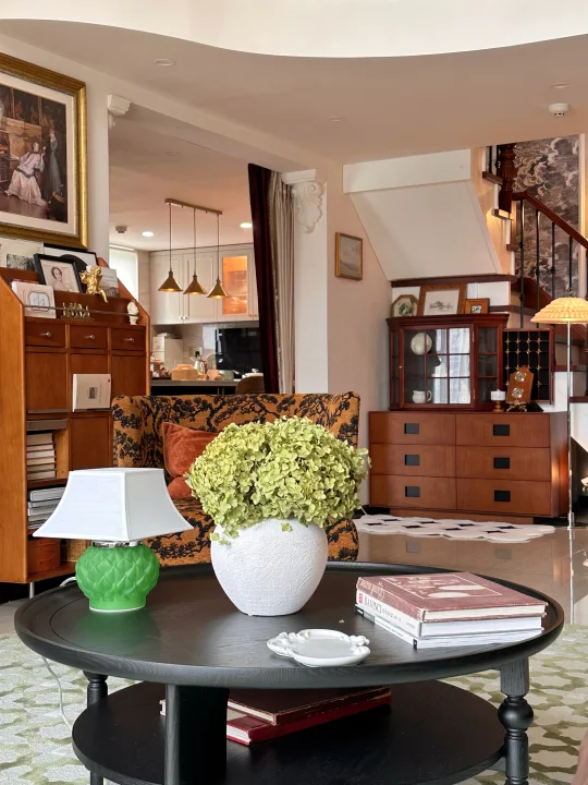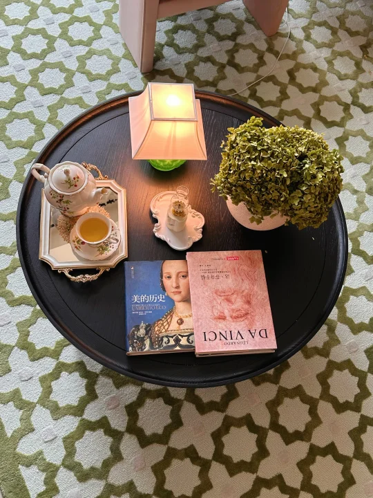 【 最近的家:给公寓增添了一些绿意,绿花地毯、抹茶干绣球、亮眼的绿琉璃台灯,像极了老电影......】