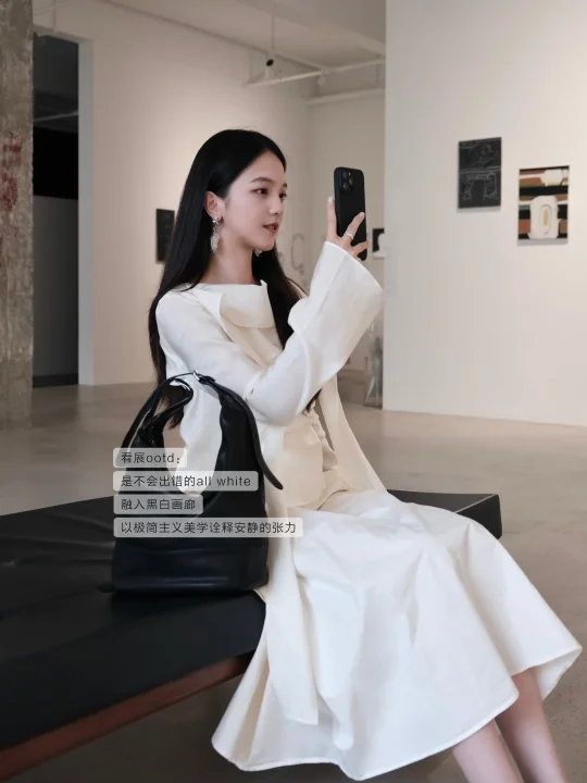 这家新中式茶馆也太会拿捏氛围了!亮面黑外套+黑丝的搭配,又酷又撩,露肩设计刚好中