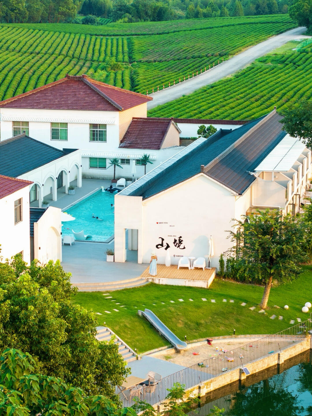 山境民宿在一片茶园中,门口有停车位和充电桩,后面的大草坪可以烧烤,垂钓,还有个小沙场