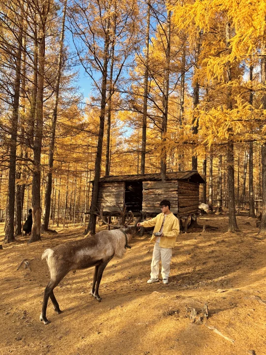 温顺的驯鹿、软乎乎的梅花鹿在这儿待着。日落时光影透过枝叶晃啊晃,像幅会动的画
