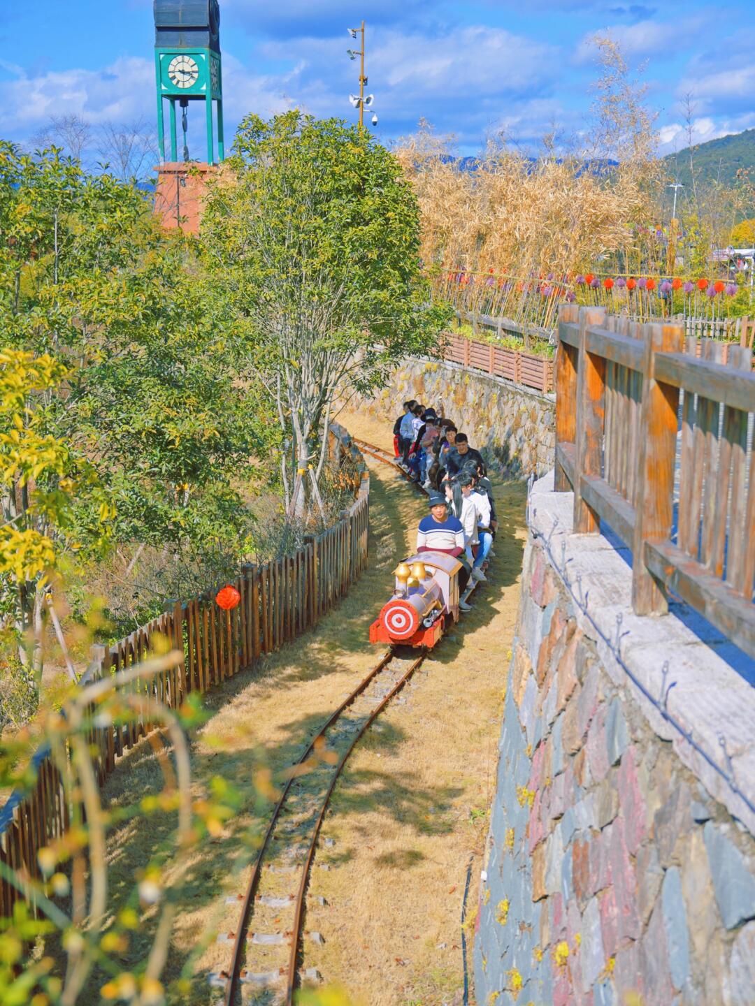 🚄整个园区呢是在高山上的,园内通过迷你观光火车串联整个项目,一圈大概10来分钟,速度很慢小朋友坐的话非常安全。天气好的时候拍照会很出片~