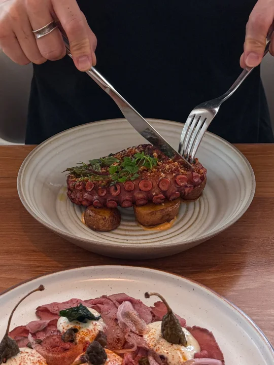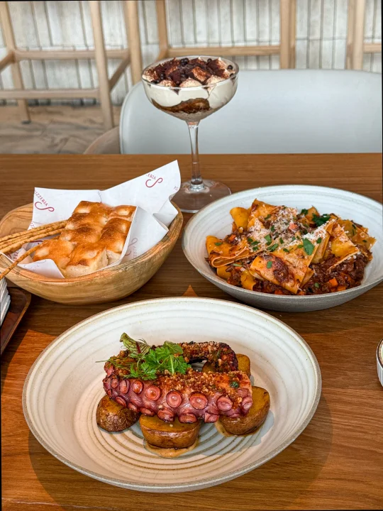 可以说是近期在上海花的最值得一笔了! 算是漂亮餐厅里面非常非常好吃的一家了! 环境氛围真的很适合约会聚餐~ 最推荐的就是现烤的披萨 面团现烤以后又香又脆~ 黑松露和奶油topping非常之浓郁!! 香烤章鱼火候恰到好处~口感在紧实和细嫩之间平衡的很好! xo提拉米苏也好好吃…… 边吃饭就能看到城市天际线,一定要晚上再来一次!