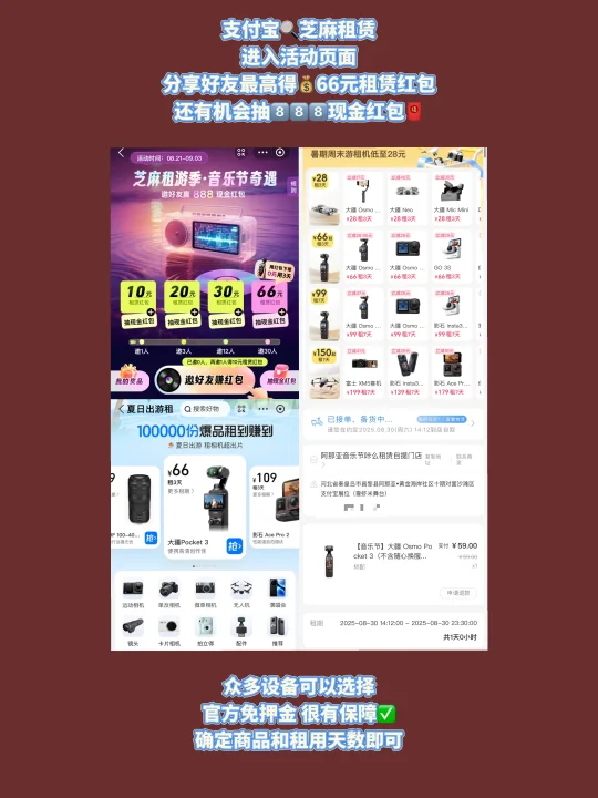 早就听说音乐节人挤人,带贵重设备又重又不安全,这次我直接选择了【芝麻租赁】!