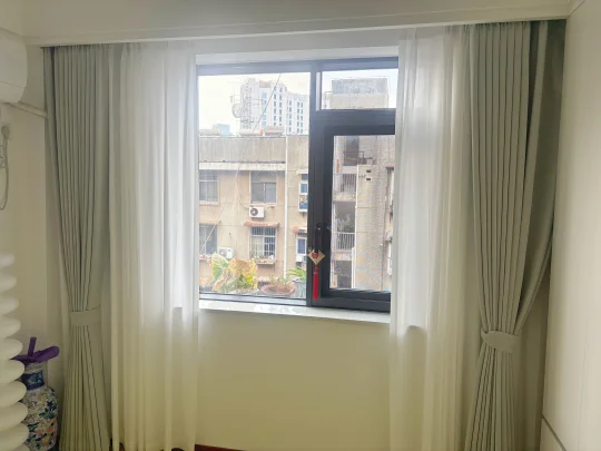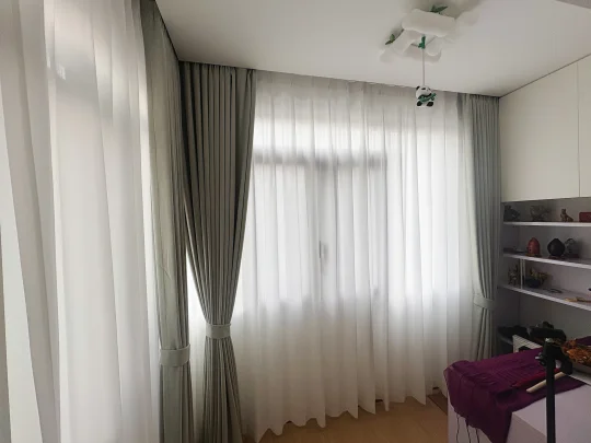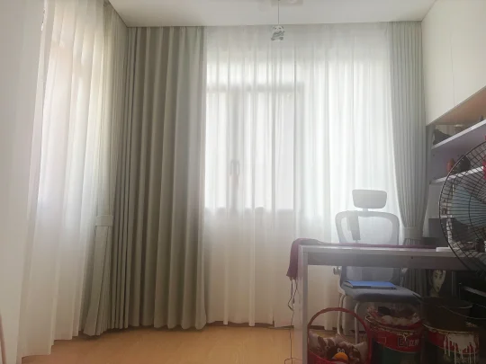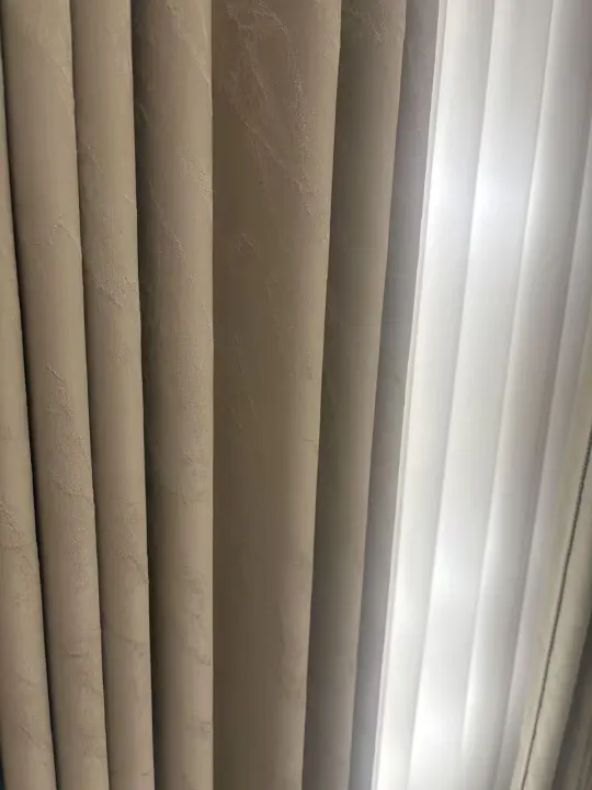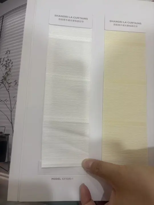 ✳️所以我猜上我联系的,自称的厂家可能是二道贩子吧,他们做生意的模式倾向亲自上门带样本和测量,当我要求去工厂实地查看,要么不回我,要么给我另一家店地址!他们给的价格是很诱人,雪尼尔79一米,幻影沙45一米,辅料,安装费全包![星R][星R][星R](注意哦,窗帘2倍熠皱,算价格是单价×长度×2的)!但是一分钱一分货,我去实地看的样品质量很低端,而且窗帘还设计到辅料,滑轨,特别是滑轨从18块到40多块一米的都有!我估计滑轨包进来,八成是选的最低端滑轨,就没继续考虑这家!而且他家香格里拉帘,在我坚持问价的情况下给我报150一平,最低配的,我觉得贵了!反正已经到汉口北窗帘大世界了,就继续逛了其他家,选了一家每一项单独报价还算实惠的!其实香格里拉帘材质也有很多种比如(图14-15),还有全遮光材质!敲定之后,老板第二天就过来亲自测量,等了一周就过来安装了