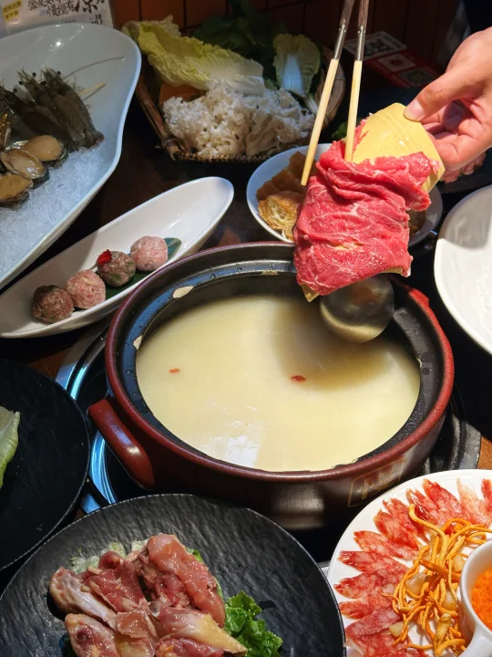 顺德粥底火锅钟楼街也能吃到啦,舒服的!! 米浆熬的粥底咕嘟冒泡,米香裹着清甜海鲜超好吃! 开锅先喝碗粥🍚浓稠鲜香,胃一下就舒服啦 论一锅粥能有多少种吃法🥣 先涮海鲜:大虾,生蚝鲜味直接融进粥底 再涮肉菜:牛肉、鱼片依次下锅,米汤煮肉更嫩! 最后再打一碗虫草花鸟窝,再来一碗“海鲜粥”,绝了 感觉超适合带着一家老小来吃火锅,舒服的很!