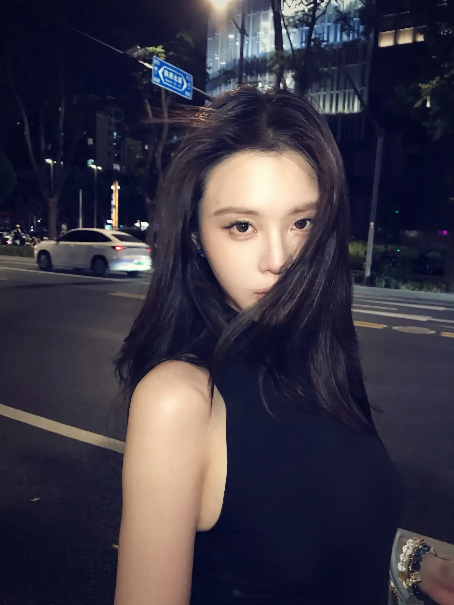 姐姐在溪边美得像幅自然画卷!黑色紧身衣勾勒出曼妙曲线,米色裤装衬得身姿挺拔,低丸