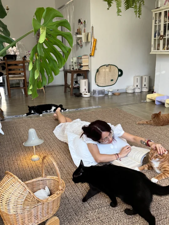 更不用说还有猫陪在身旁。