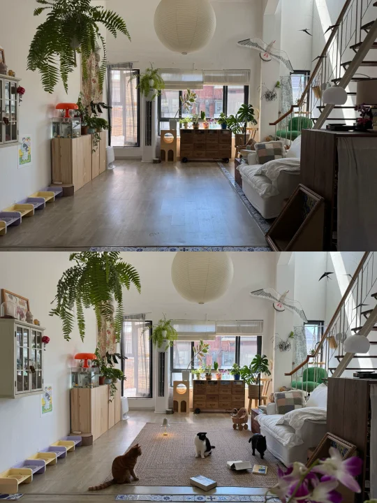 为了养小猫,租空房子让它呈现出温暖春日的样子,懒洋洋的也带着小猫的气质;