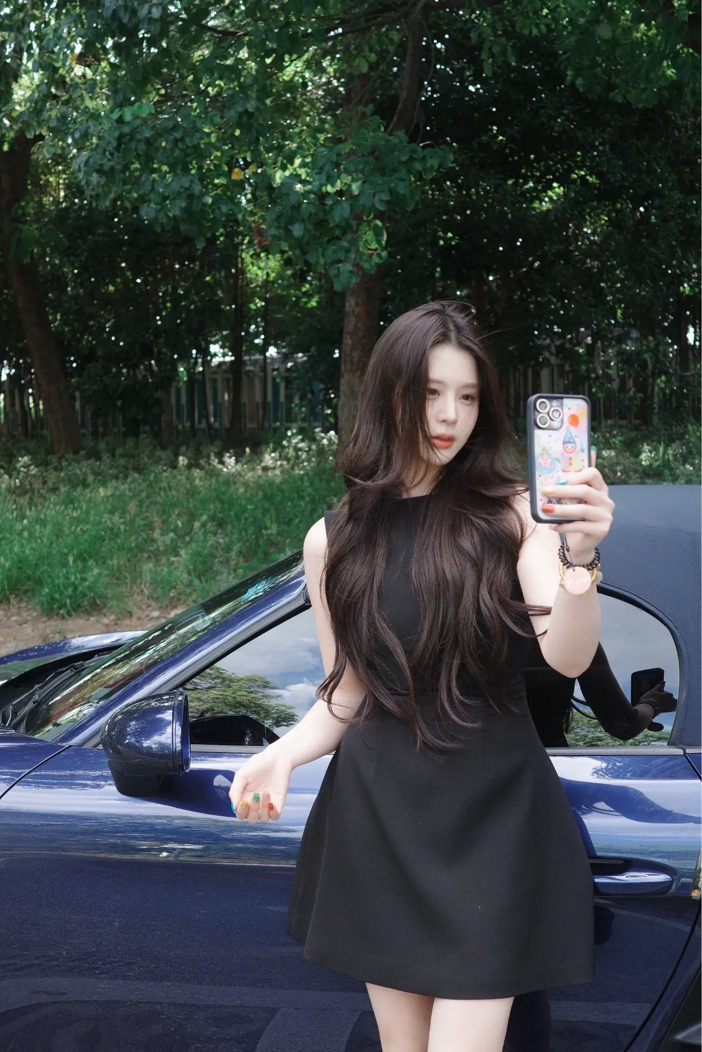 姐姐在溪边美得像幅自然画卷!黑色紧身衣勾勒出曼妙曲线,米色裤装衬得身姿挺拔,低丸