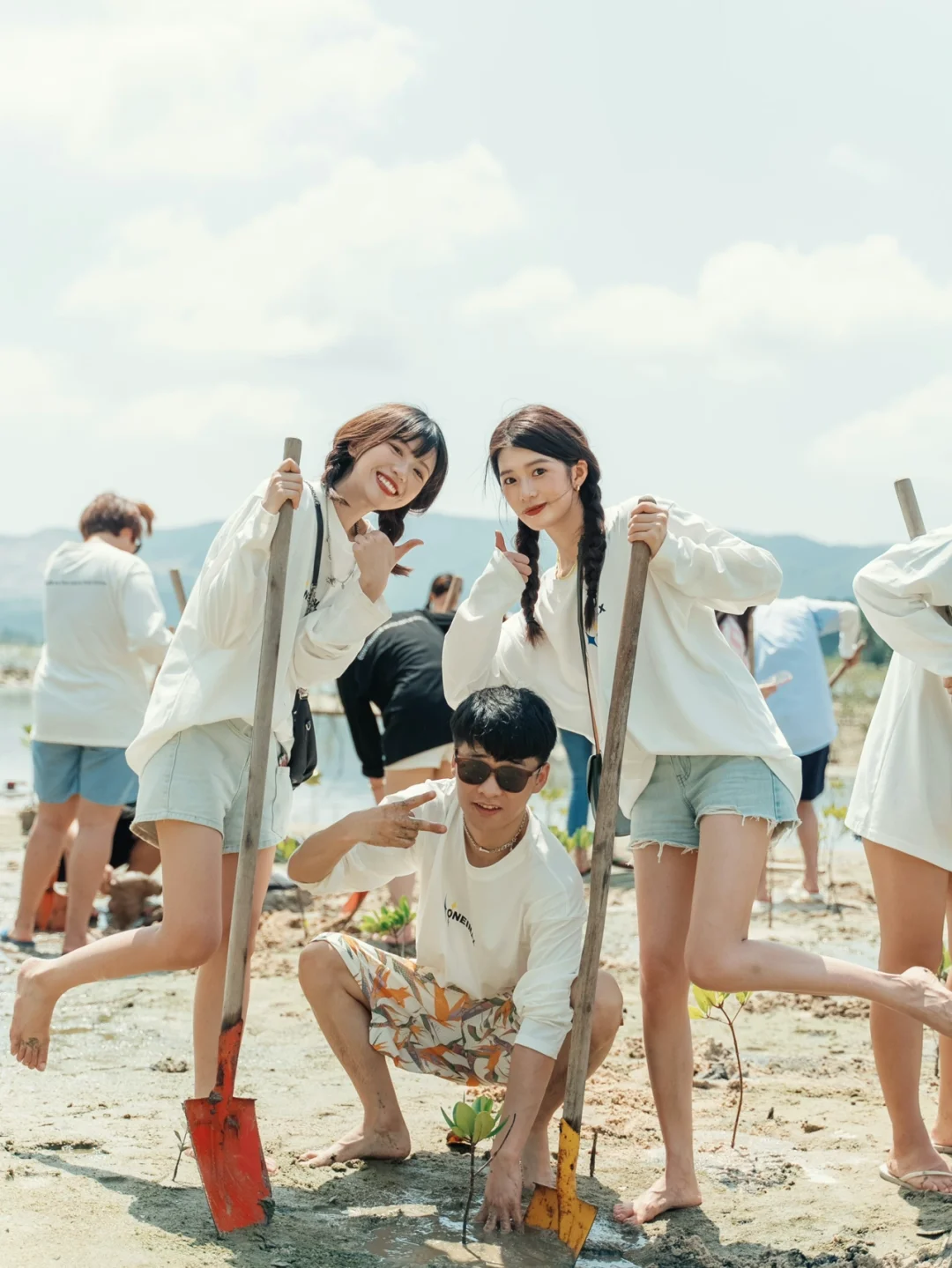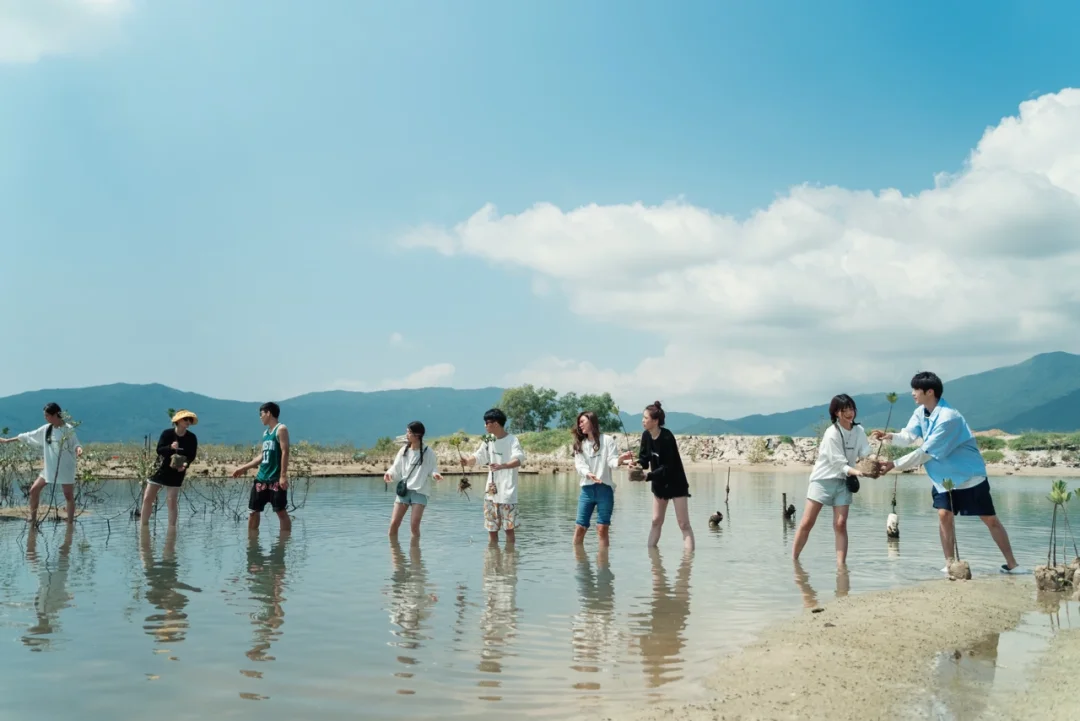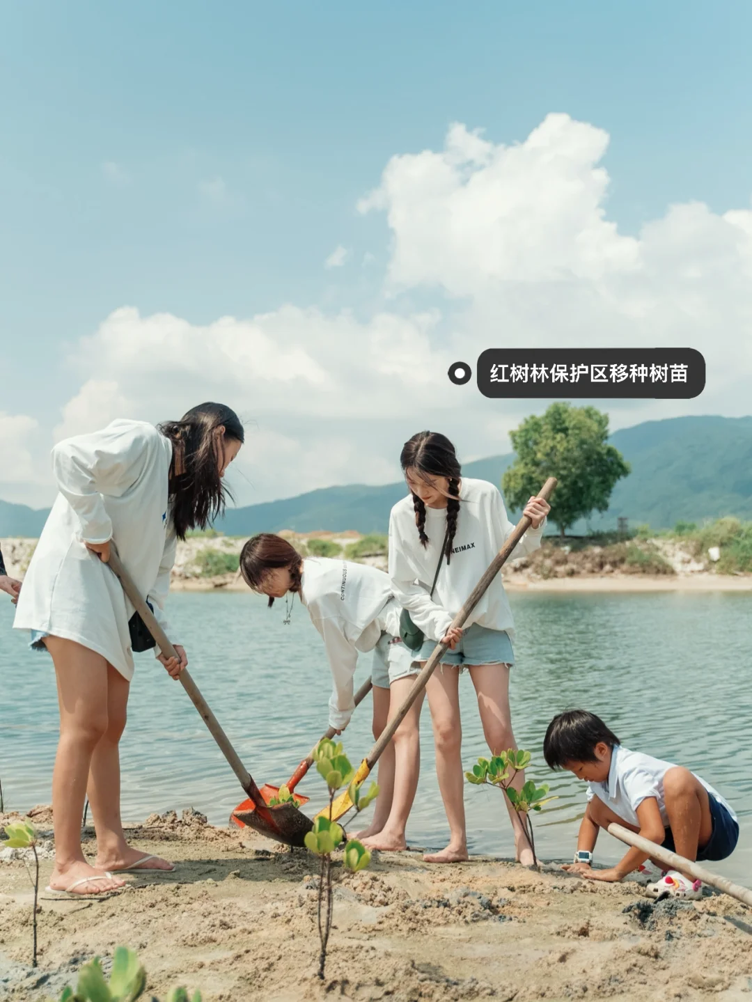 佳木斯的六岁小朋友 在她工作于救助站的爸爸的带领下 跟着我们一起在海边的红树林保护区 种下了一株株树苗