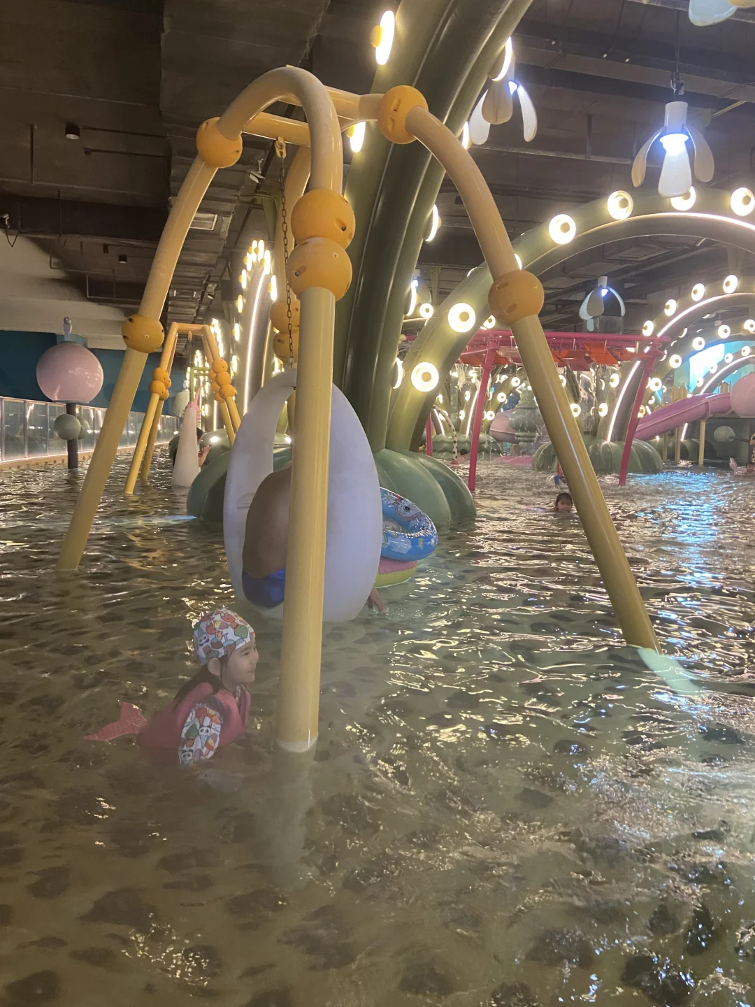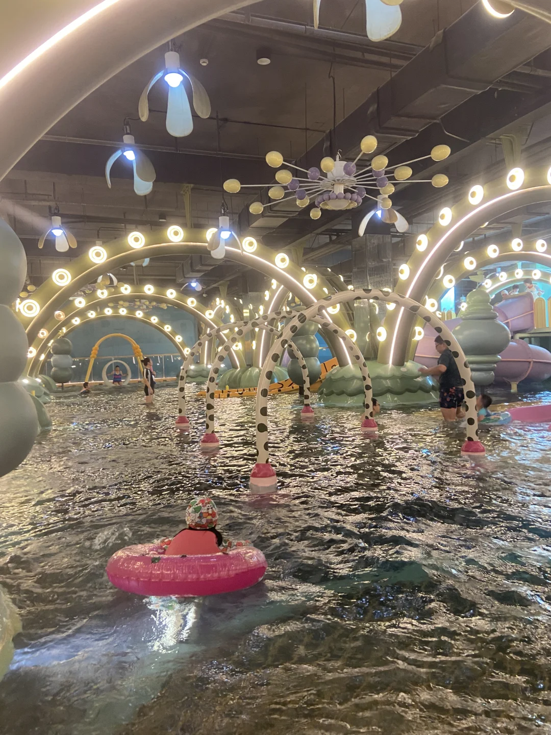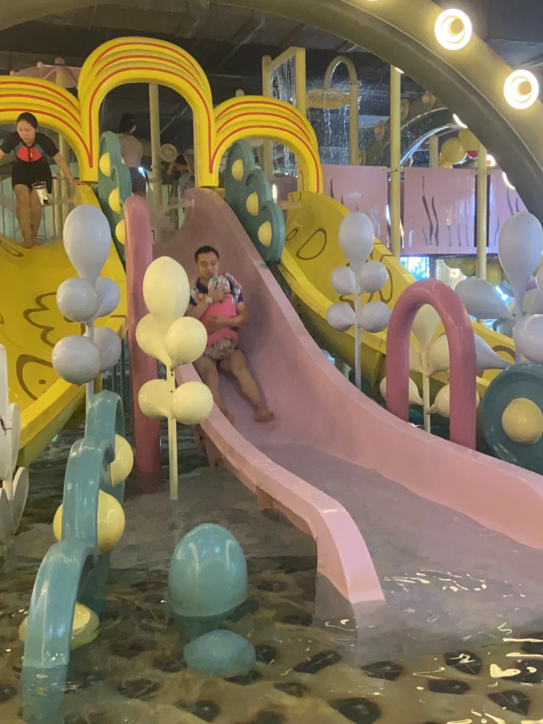 周末暖宝说想要去玩水,正好清河半岛新建了河马乐园,室外泳池和造浪池也开了,果断冲!赶上暑假人超多,但里面很大,能玩的开!别担心❤