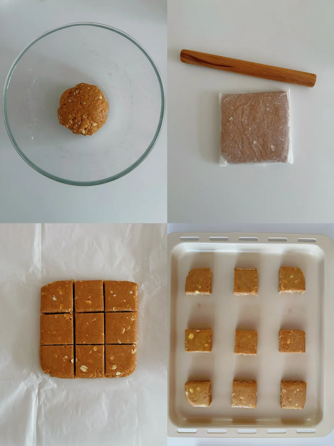 粉类:低筋面粉 130g|豆浆粉/黄豆粉 50g|细砂糖10g|燕麦片 20g|泡打粉 5g