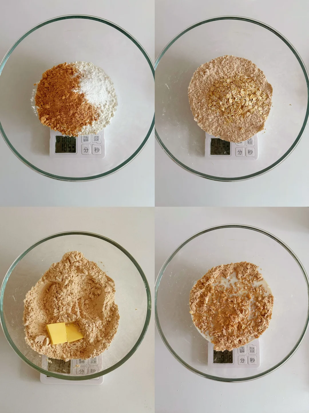 1. 把粉类都过筛一遍后混合均匀 再倒入即食燕麦片