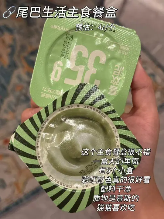 这个主食餐盒很不错,一盒大的里面有6个小盒,彩虹配色真的很好看,配料干净,质地是慕斯的,猫猫喜欢吃