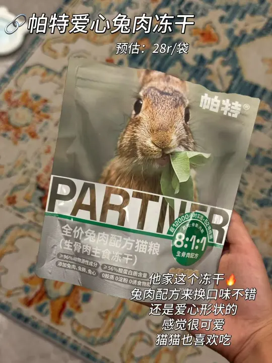 他家这个冻干兔肉,换口味不错,还是爱心形状的,感觉很可爱,猫猫也喜欢吃