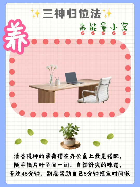 👇🏻 明日行动清单: ✅ 早餐喝“脑动力糊糊” ✅ 午间按压神门穴 ✅ 桌面摆放薄荷盆栽