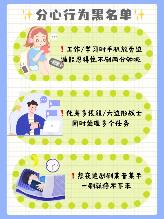 ❗️ 熬夜追剧(睡眠不足直接影响第二天专注力)