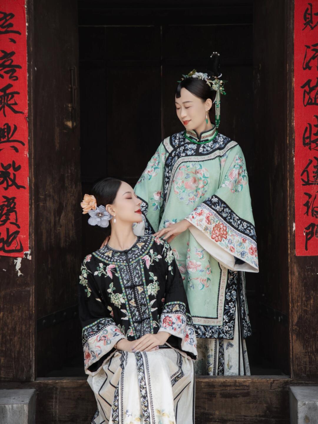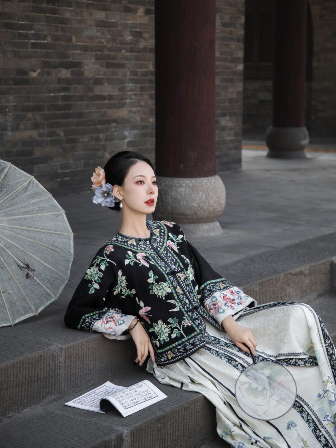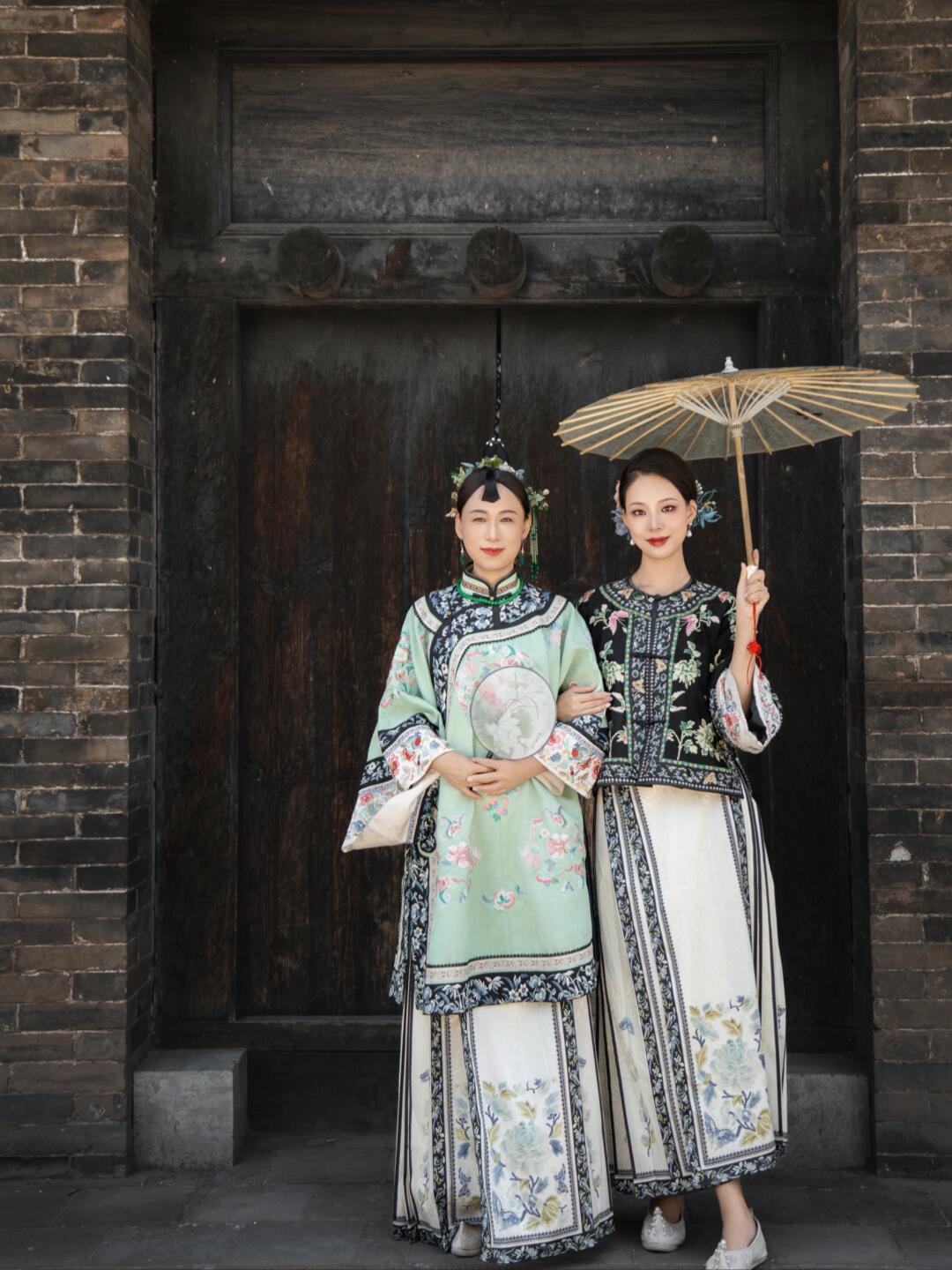 作为山西姑娘怎么能不来一套俺们特有的晋商少奶奶妆造呢 带着妈妈到平遥拍了一套 一整个晋善晋美住了🫰🏻 个人觉得选择这种青黛色的更有感觉 配上大院砖瓦 撑一支伞 晃悠着鸟笼子 捧着书卷 一秒梦回大院时光 · 🔍平遥红一桃旅拍 在古城里不能开车进,可以坐观光车进去,化妆+拍照大概2小时很快