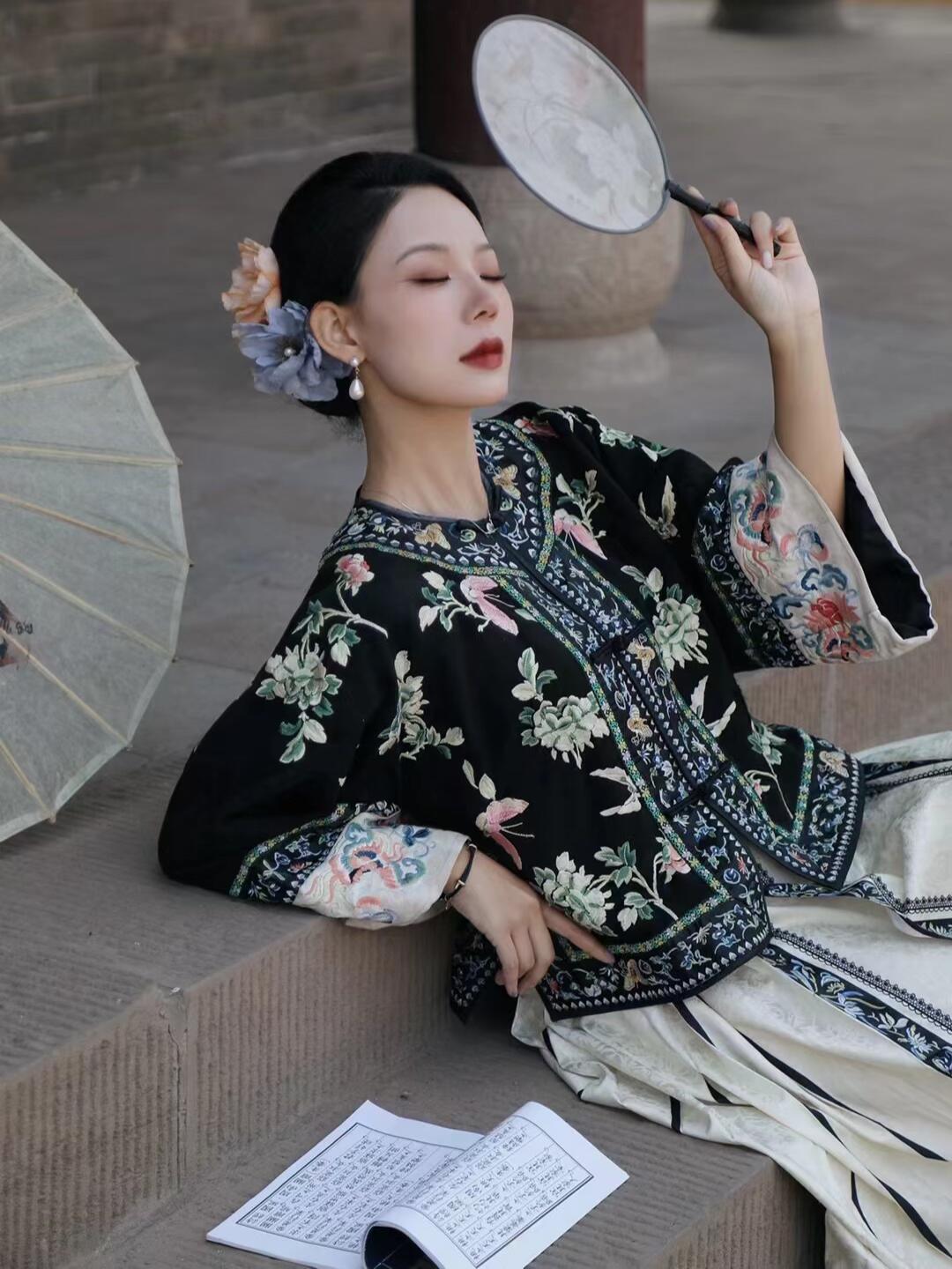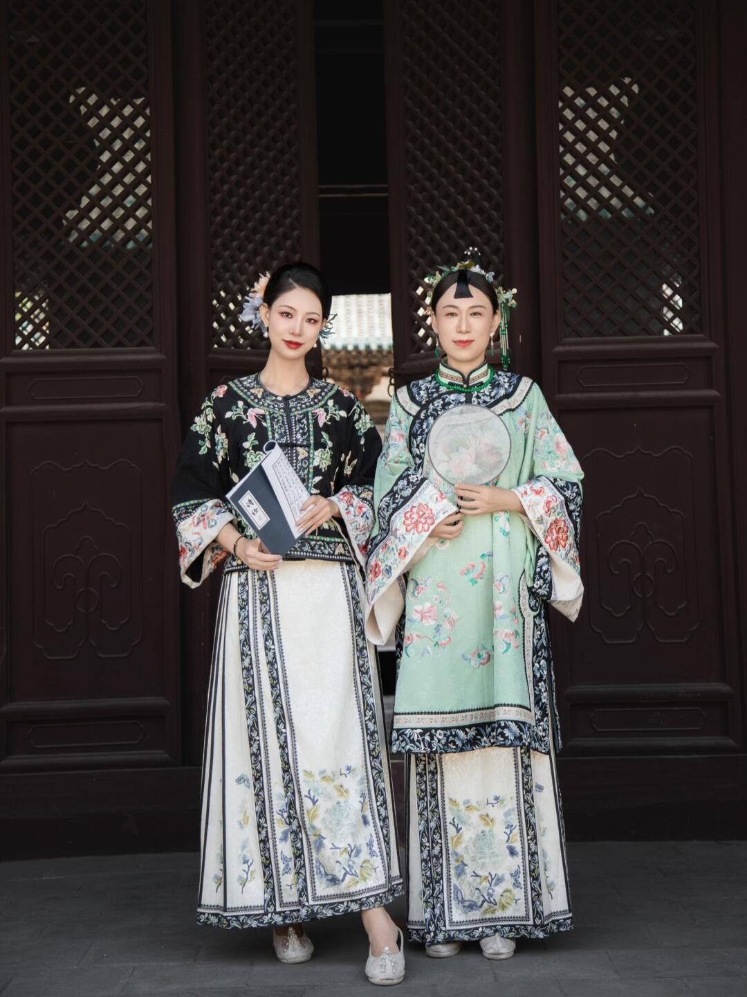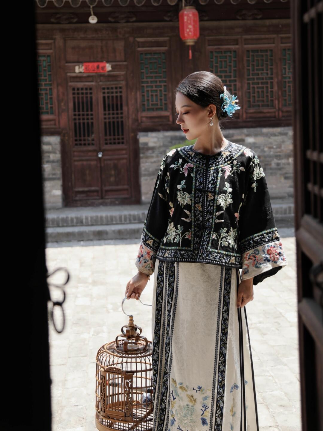 作为山西姑娘怎么能不来一套俺们特有的晋商少奶奶妆造呢 带着妈妈到平遥拍了一套 一整个晋善晋美住了🫰🏻 个人觉得选择这种青黛色的更有感觉 配上大院砖瓦 撑一支伞 晃悠着鸟笼子 捧着书卷 一秒梦回大院时光 · 🔍平遥红一桃旅拍 在古城里不能开车进,可以坐观光车进去,化妆+拍照大概2小时很快