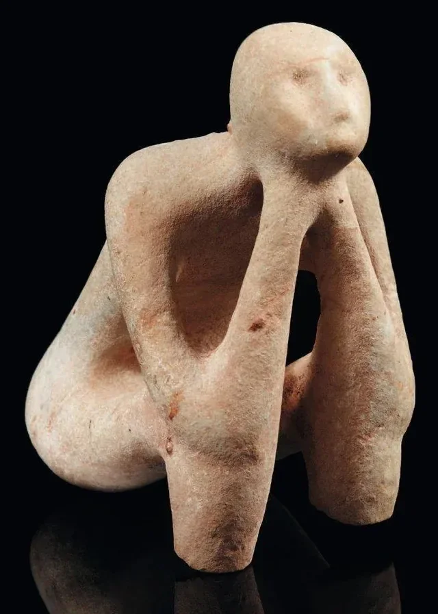 表现一名男子托腮沉思的姿态,出土于巴尔干,年代为公元前5000至4500年。