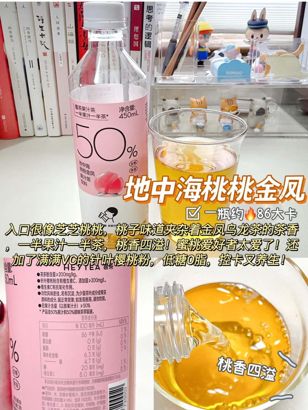 打开瓶子就有香香的桃子味溢出来!好治愈!入口很像芝芝桃桃,桃子的味道夹杂着金凤乌龙茶的茶香,因为一半果汁一半茶,所以能很实在的感受到桃香四溢!蜜桃爱好者真的太爱了!还加了满满VC的针叶樱桃粉,低糖0脂,控卡又养生!