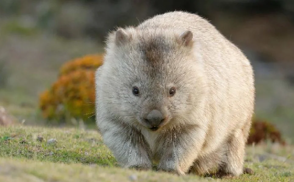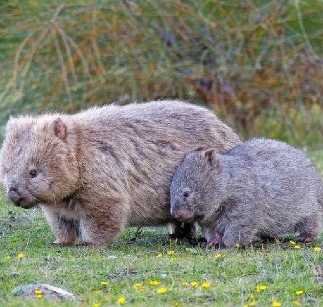 🍀形态特征:袋熊长相稍像熊,但比熊小。体长70-110厘米,体重20-35千克。腹部有育儿袋,袋内有两个乳头,袋口向后开。眼、耳均小,身体矮胖敦实,称得上“五短身材”。袋熊头骨略扁平,鼻面部相对较短。所有牙齿无齿根,终生生长,尾退化。育儿袋向后开口,内有一对乳头。四肢短而有力,前足5趾,宽而具长爪,后足第3和第4趾合并。爪强壮有力。尾退化,仅留痕迹。被毛较粗,呈灰褐色。