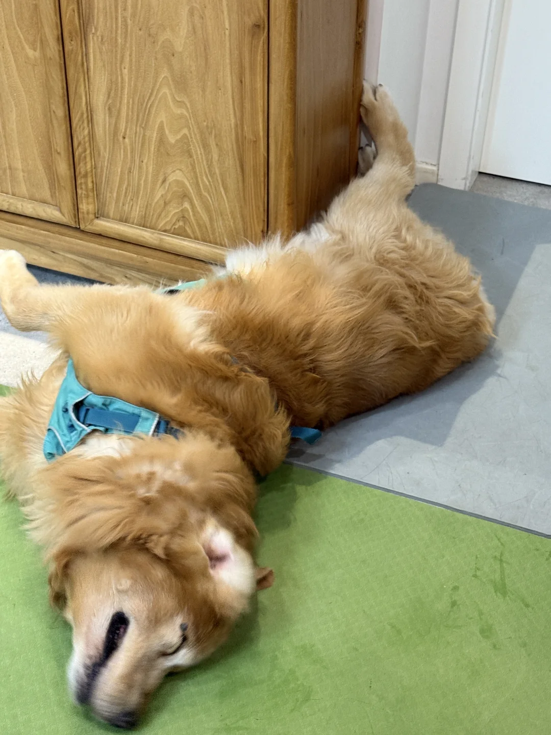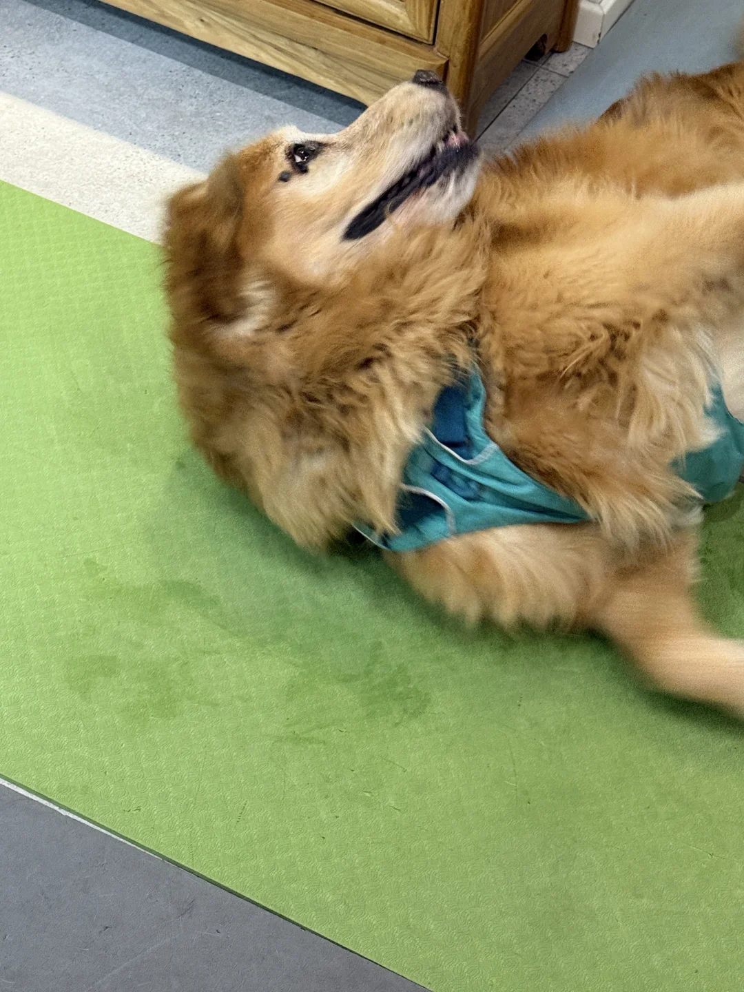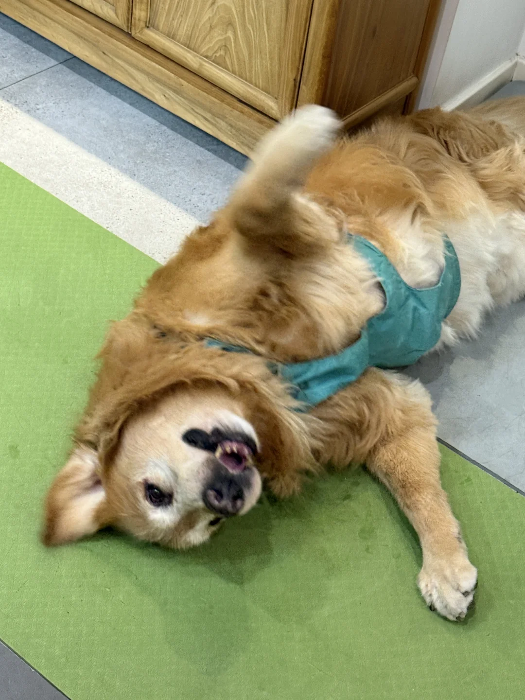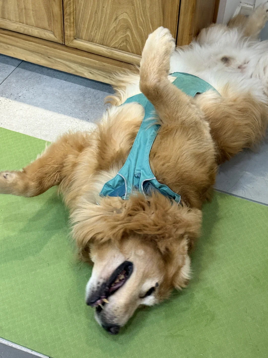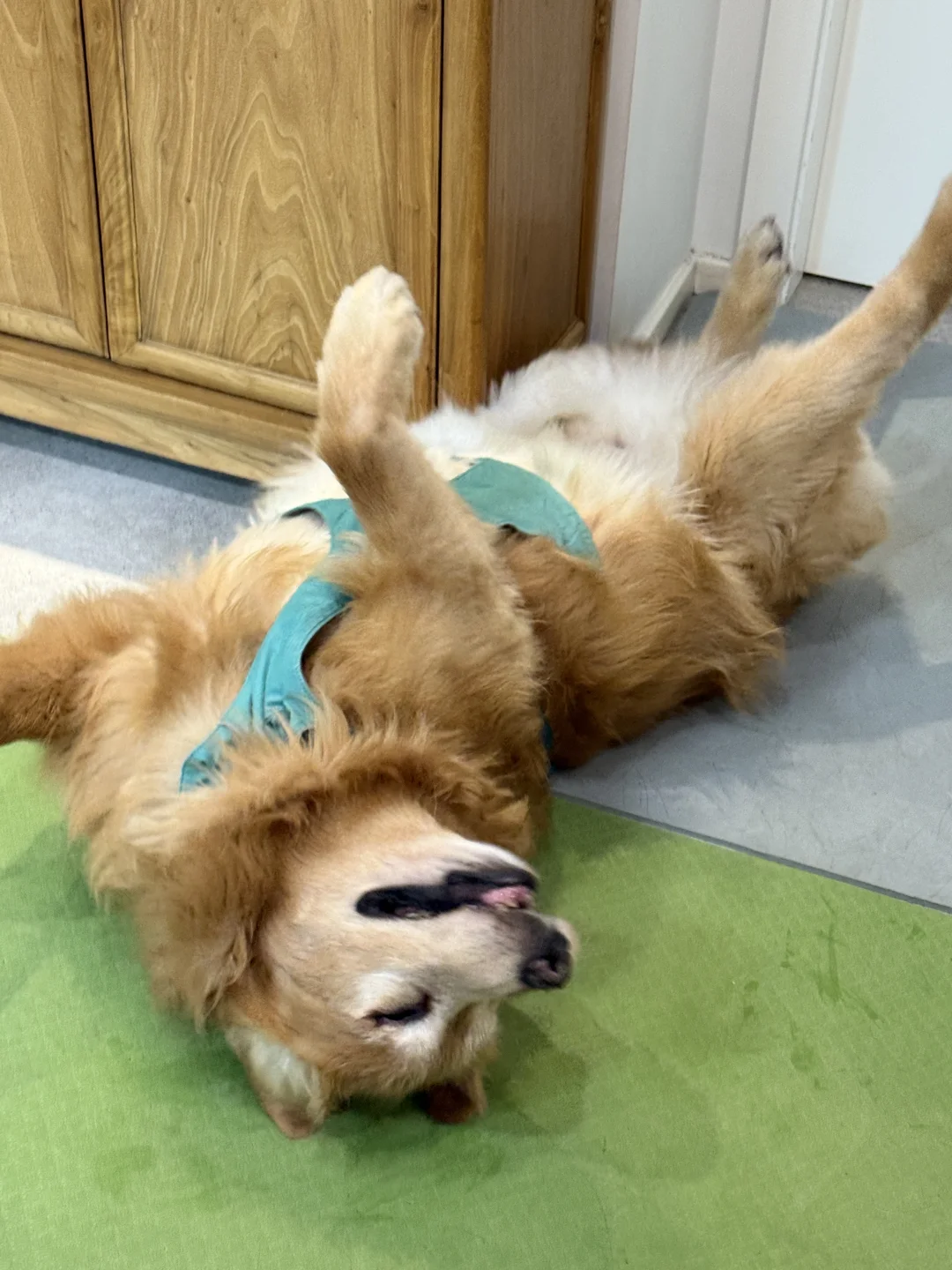 小狗吃完饭就开始打滚蹭蹭 好开心啊[飞吻R][飞吻R][飞吻R] 为了防滑,拼了。。。 家里一地的五颜六色垫真的绝了😂😂😂