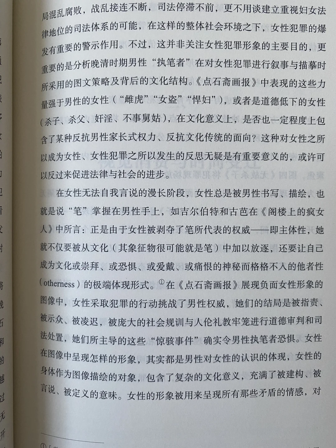 印象深刻的是以女性犯罪为主题的一章。《展示女罪:〈点石斋画报〉中女性犯罪图像的视觉特征与文化阐释》试图探索这些图像是通过怎样的图文策略来训诫和规范女性行为的。但这种女性犯罪的本质不过是对父权制进行的反抗,是男性对“越界”女性的恐惧的视觉化