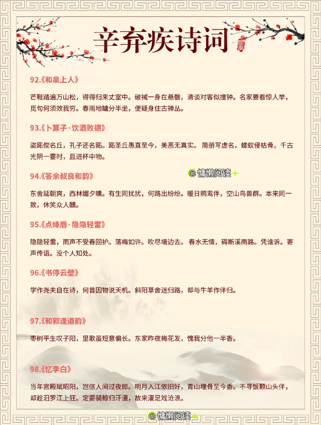 诗词 古诗 古诗词 唐诗 让孩子爱上古诗词 辛弃疾诗词 我心中的绝佳诗词 辛弃疾 古诗词赏析 宋词 宋词三百首