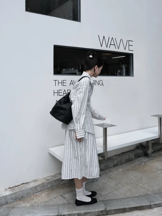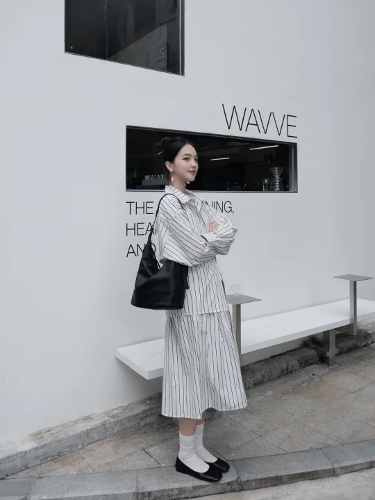 最近的天气逐渐变得舒服 经典条纹套装上身 柔软塌塌包一背 慵懒又随性 秒get早秋松弛感 和WAVVE的蓝白调好配🫧 -