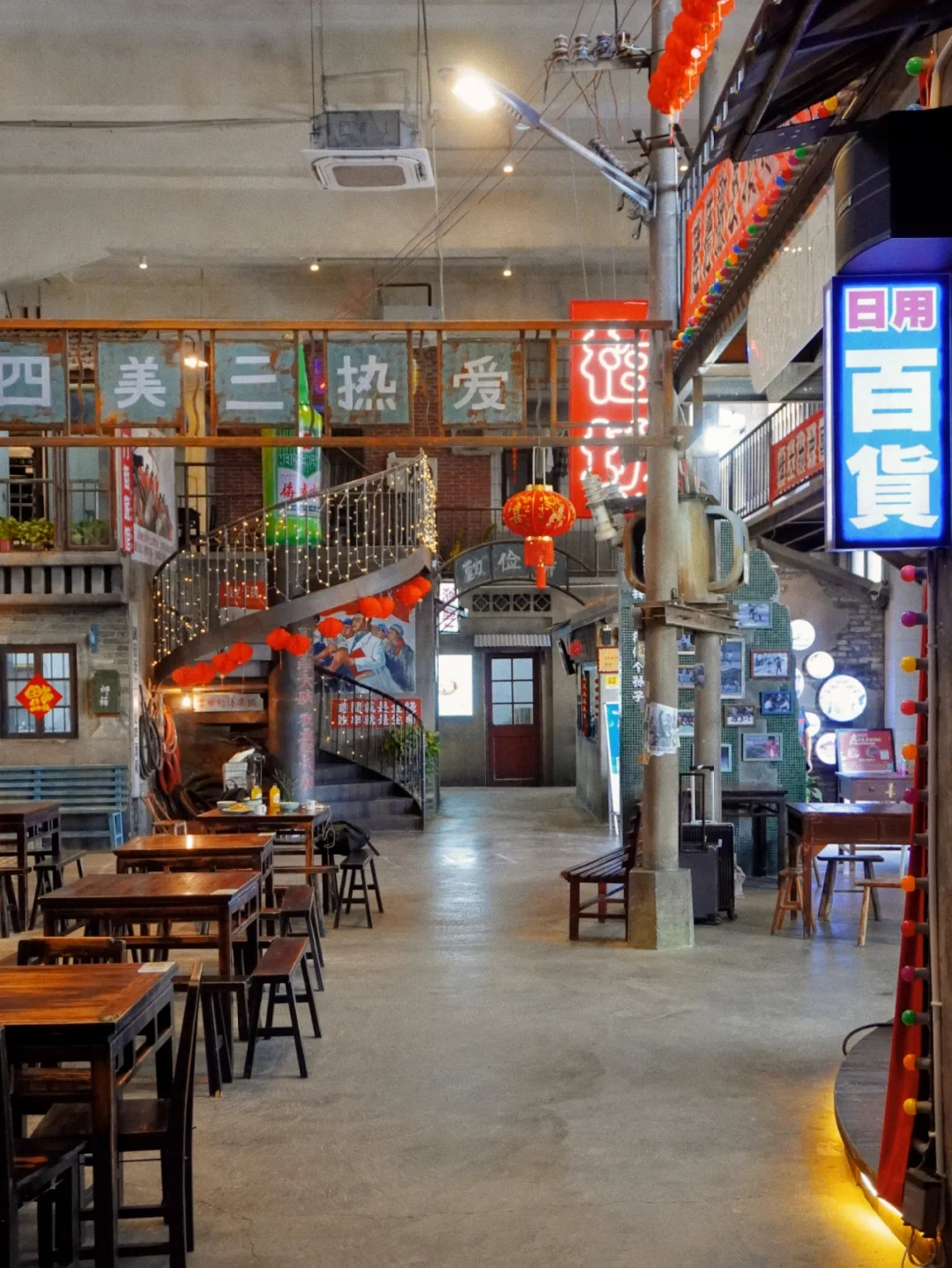 🍜每一道美食都大饱口福,在木桌、长条椅上品尝美食,就好像回到了小时候