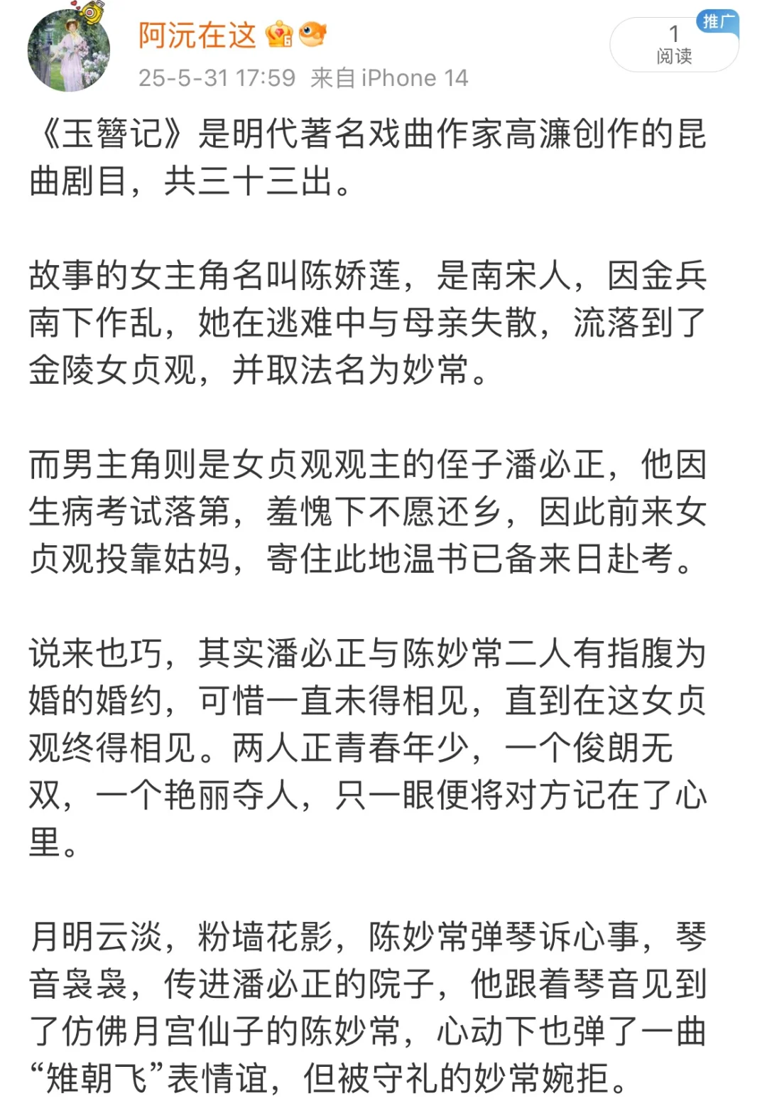 《玉簪记》是明代著名戏曲作家高濂创作的昆曲剧目,共三十三出。