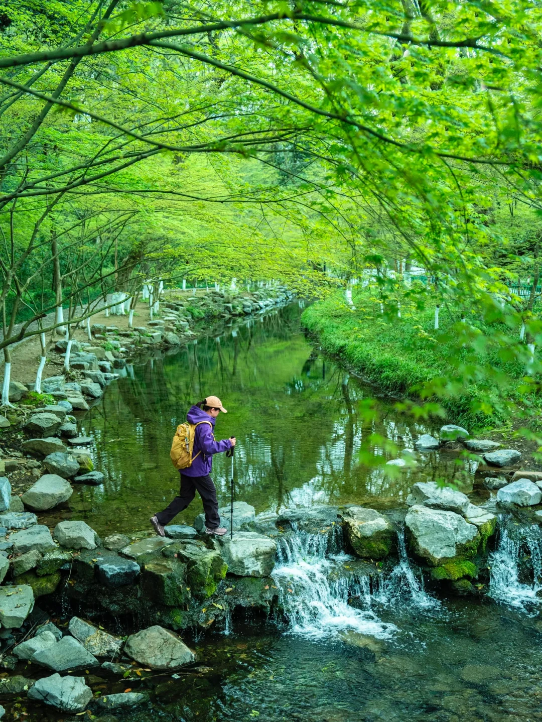 这条路线全程平路,适合新手友好,亲子徒步,有溪水