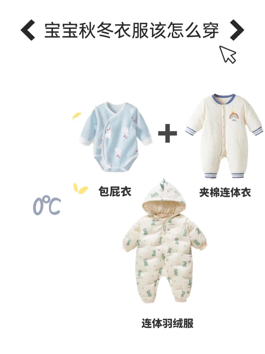 0°C:包屁衣➕厚夹棉连体衣➕连体羽绒服