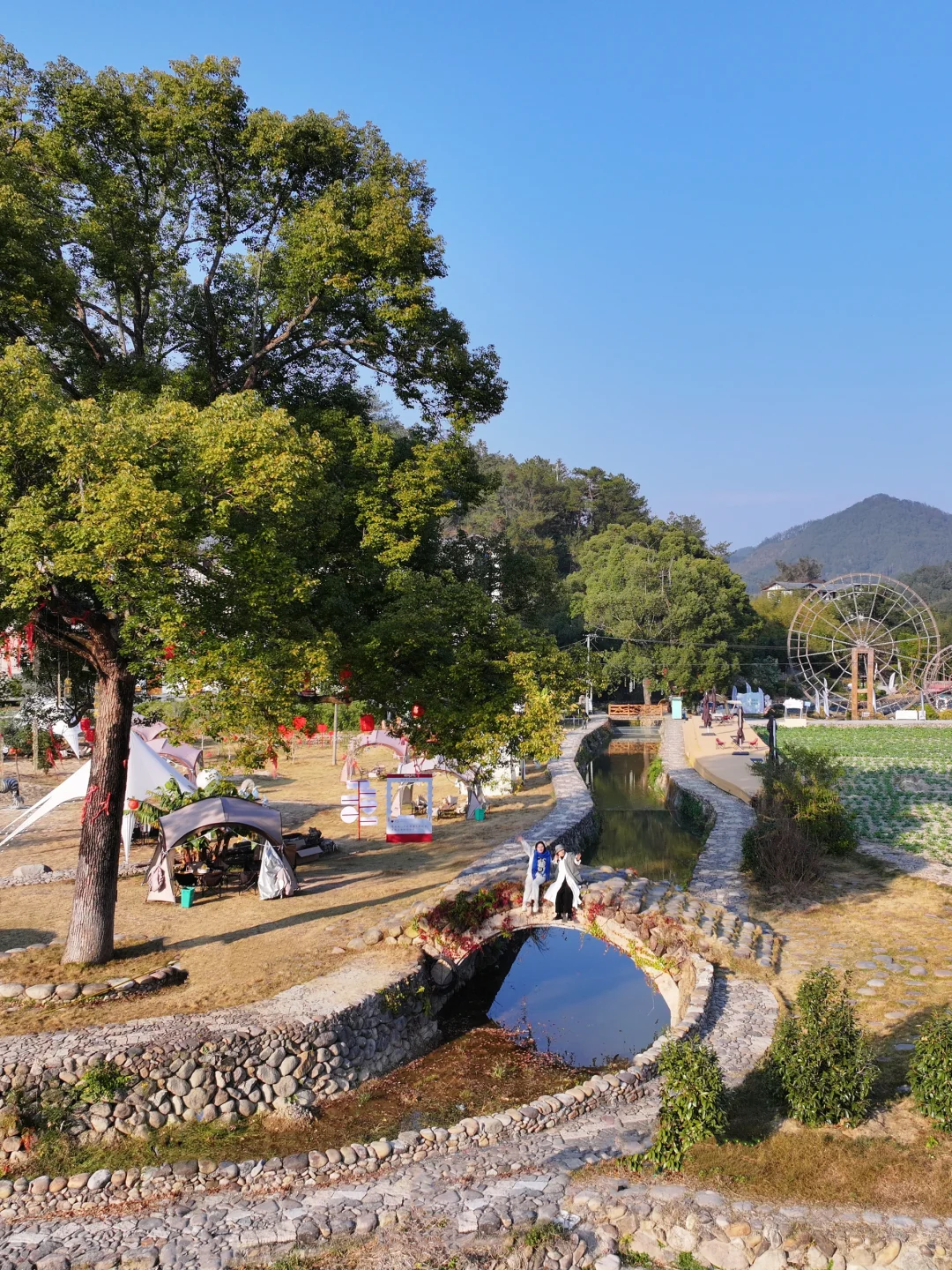 草坪老树有古石桥