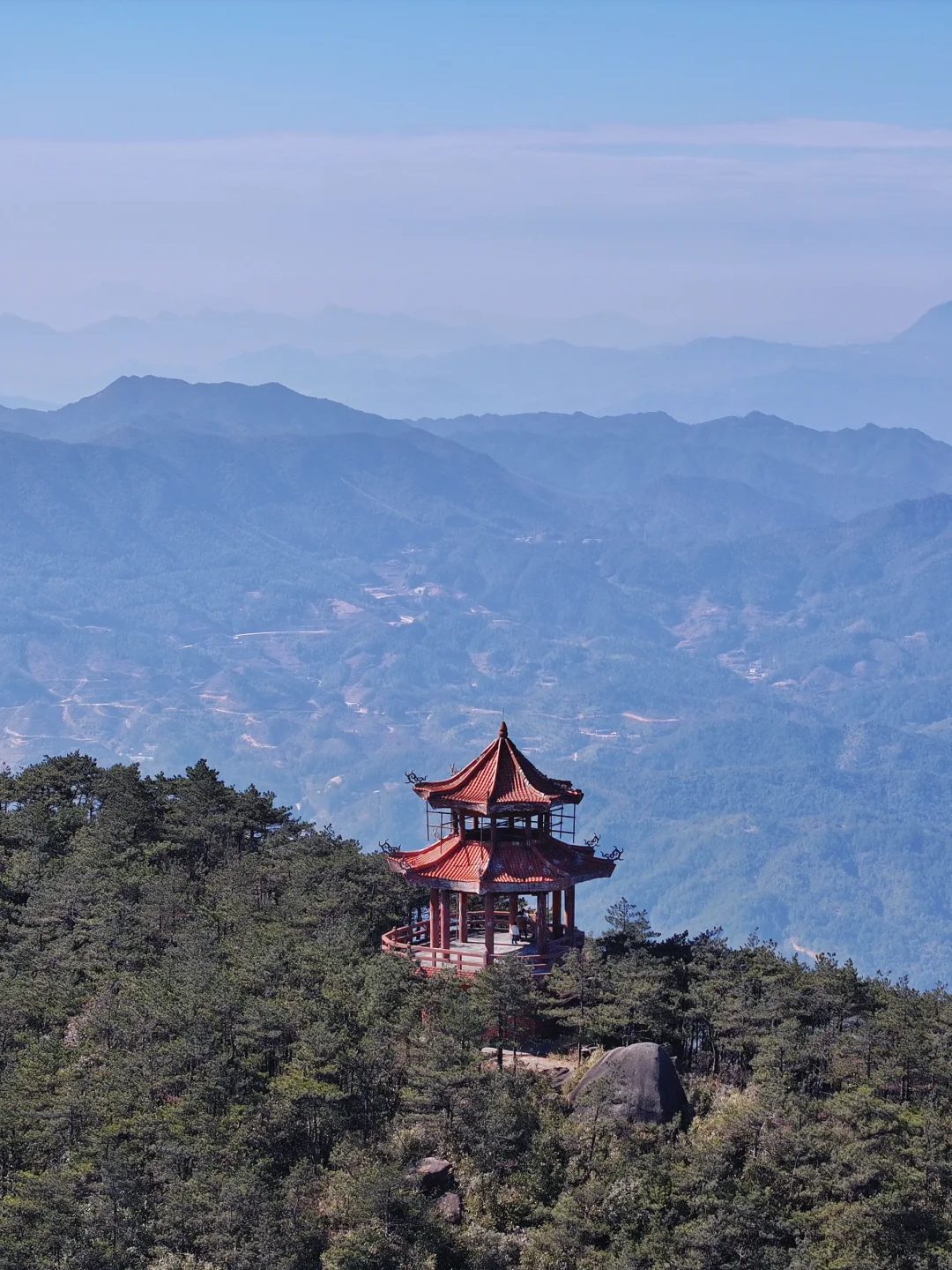 九仙山早上温度低,要穿厚外套带手套帽子。