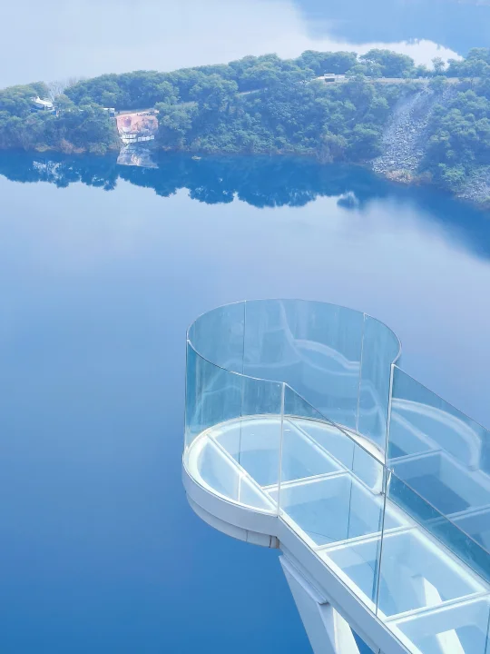 二楼的180°环湖露台是绝佳的拍照点位,以“蓝眼泪”湖为背景,能轻松拍出悬崖大片的感觉。还有崖边栈道,也是ins风满满,随便一拍都能刷爆朋友圈。