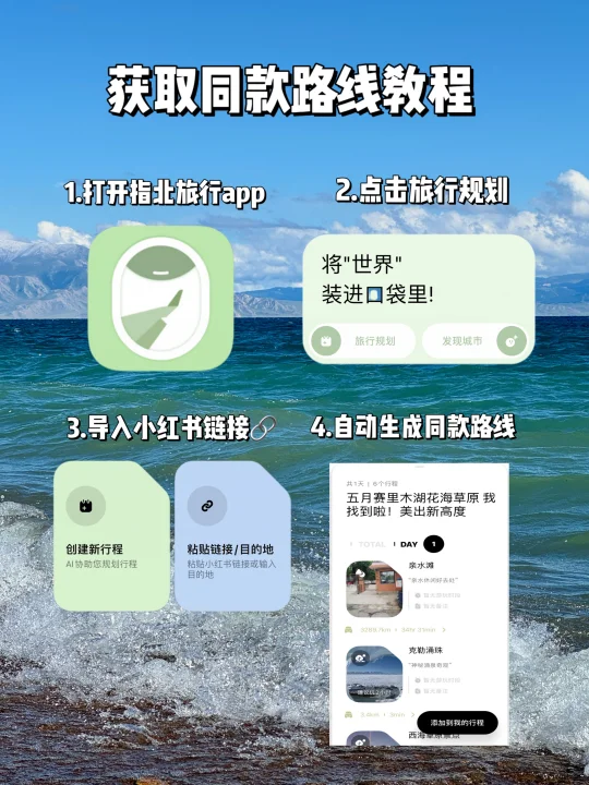 如果想参考我的路线,可以复制笔记链接,打开指北旅行app,粘贴至右上角🔗,还可以调整制定自己的专属路线[集美R],景点详情包括拍照点位都有哦~还可以输入预算智能推荐酒店,旅行省心又省力!!