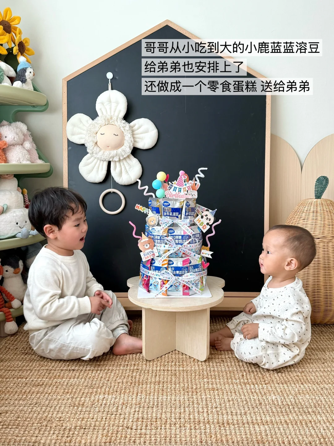 零食蛋糕就直接用小鹿蓝蓝溶豆做的