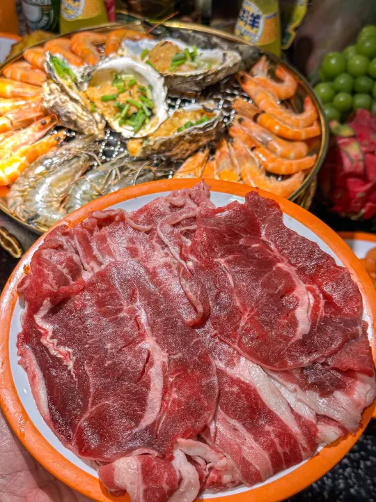 新邻生活广场刚开的鑫食盛炭烤自助也太狠了!人均百来块能把安格斯牛肉、无限量烤生蚝吃到爽,刚开业人还不算挤,不用排队等位,拿菜不用抢