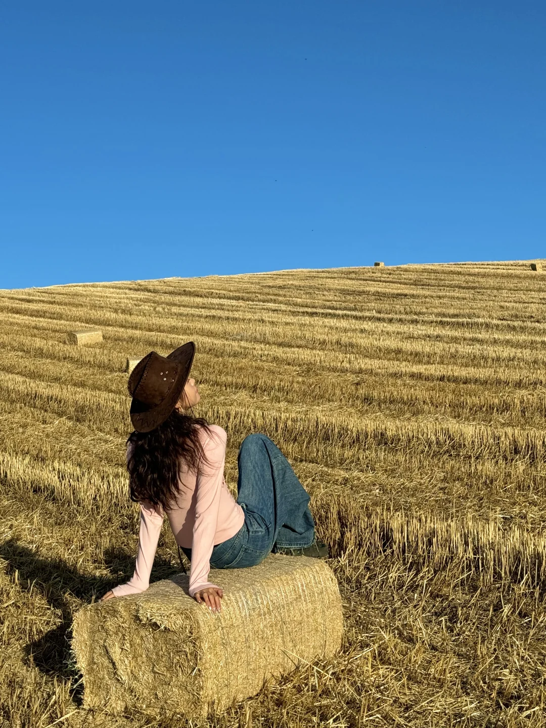 这个季节正好在秋收,可以看到大面积草垛,拍照好看