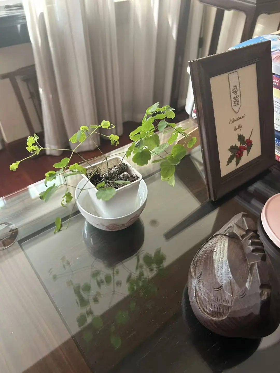 乡下带回来的小植物,如获至宝,天天看,要是过去,我是不会关心的,现在植物也好,动物猫迷,我都特别喜欢,如果光在家里炒股,也不出去看看精彩的世界,就什么也体会不到了,人生就在于体会这个过程。