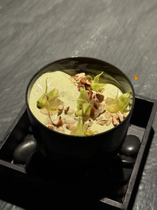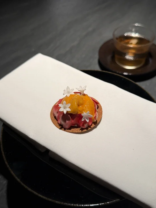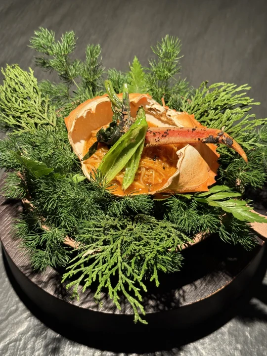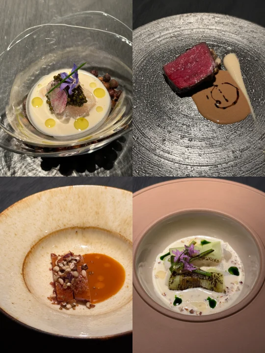 奥庐Aolu又上新菜单了!火速冲了 新的一季还是秉持着对“海河山牧”的理解 把食材以不同的章节去呈现 很有故事也很有诗意 一家我认为少见拍照好看 又好吃的fine dining 🥢天葵辣膏蟹 蟹肉被处理成细腻的丝状 上面的香料有着炭烤的烟火气 佐以西班牙进口小辣椒 只在品尝蟹的鲜美时作为恰到好的佐料 在一杯粉红特调冰饮之后就烟消云散 🥢姜母鸭 很高级的口感 第一次尝试姜母作为佐料 感觉和鸭肉的丰富油脂及软嫩的鸭肉在口腔达成平衡 🥢甜品 也很惊喜 薄荷味给整个菜单画上清爽的句号 让人回味无穷 属于人生必打卡餐厅!!能在上海一众卷到不行的fine dining中脱颖而出了 .