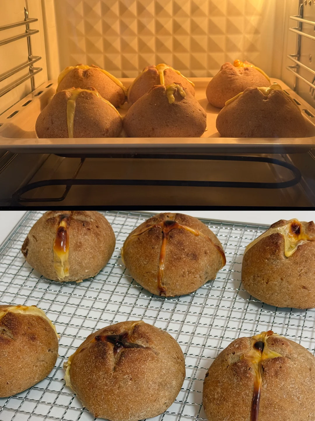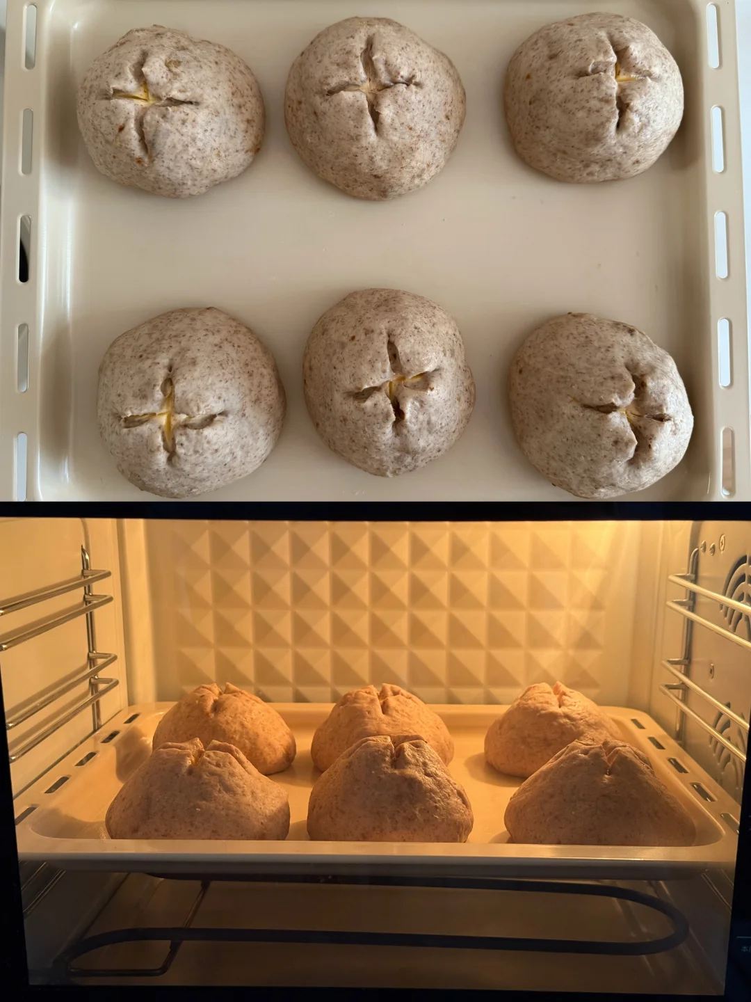 6.表面剪开十字 烤箱提前预热上火200下火190 16分钟左右