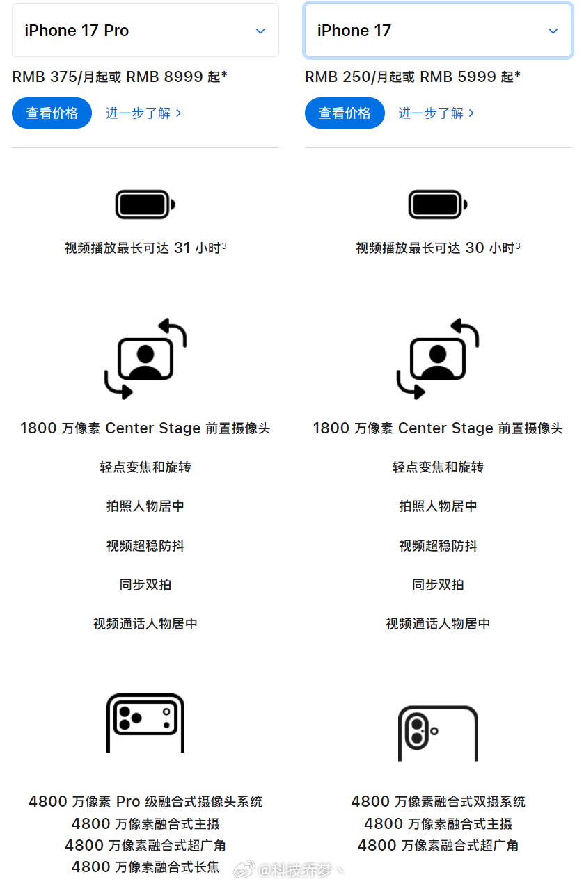 今年最纠结的就是iPhone17到底买标准还是Pro,相同的屏幕,都有高刷,主摄和超广角都一样,真正用得上的差距就一个长焦。至于Pro更好的散热不打游戏意义不大、USB3的接口更是几乎用不上,更好的视频拍摄能力也是几乎用不上的存在,标准已经有足够好的视频拍摄能力了。为了一个长焦需要付出的差价高达3000,如果是Pro Max就要为了一个大屏和长焦额外付出4000的差价[淡淡的][淡淡的][淡淡的]