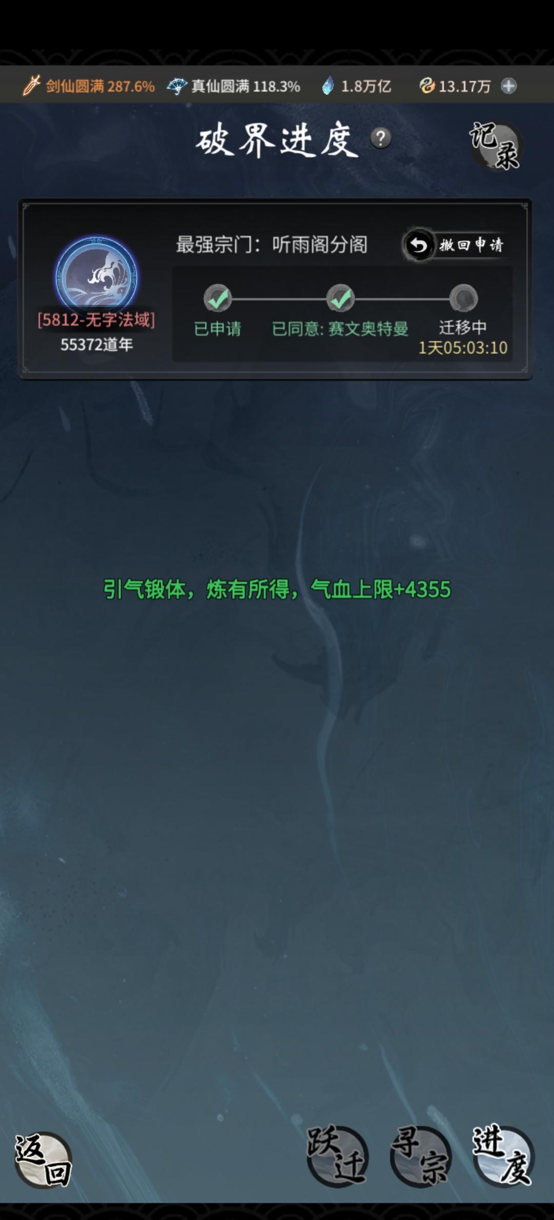 铭记真仙5.2107万亿 申请迁越,准备突破金仙